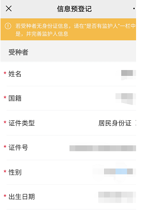 第二步:信息预登记