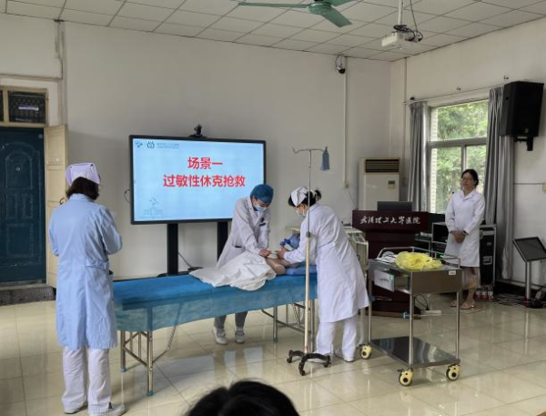 为进一步提升医务人员应对突发急危重症及医患纠纷的综合处置能力,构建安全、高效的医疗环境,6月19日下午校医院开展了一场融合“过敏性休克急救”与“医患纠纷应急处置”的实战化综合演练。医院负责人、相关科室及医护人员参加。